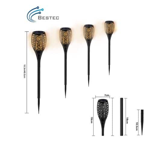 מחפשים דרך מצוינת להאיר בתאורה קסומה את הגינה את השביל או החצר שלכם? אין צורך לחפש יותר מעבר לתאורת הלפיד הסולארי שלנו! הלפידים הסולאריים מושלמים להצבה לצידי שביל הגישה לבית או בכל אזור אחר בגינה. חבילה של 4 לפידים סולאריים ניידים שיאירו את הגינה בתאורה רומנטית וללא צורך חיבור לחשמל. בנוסף, הם אטומים למים, כך שאין חשש בעת ההשקייה או ימים גשומים.